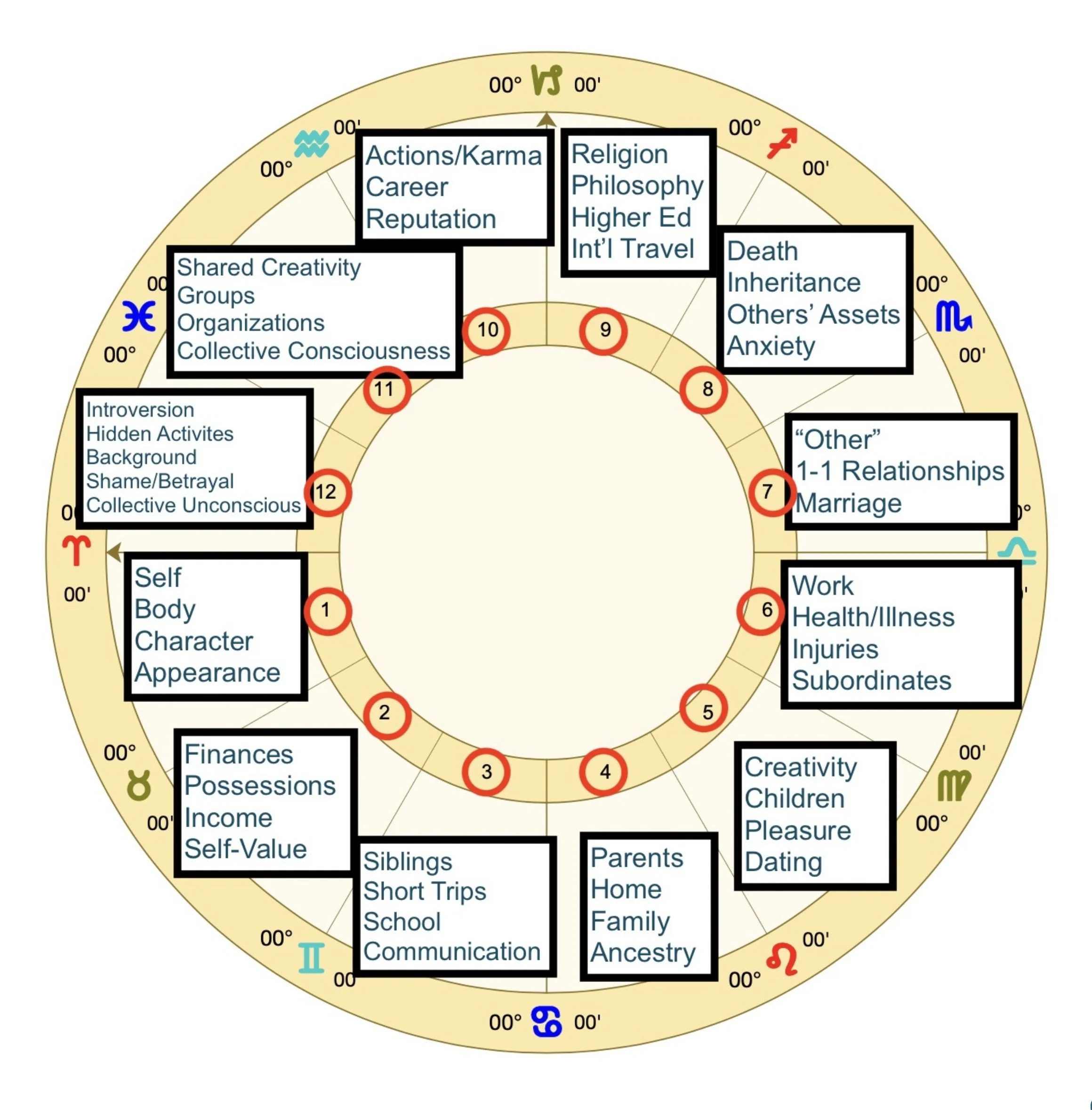 We have 12 houses, each corresponding to a different area of life: